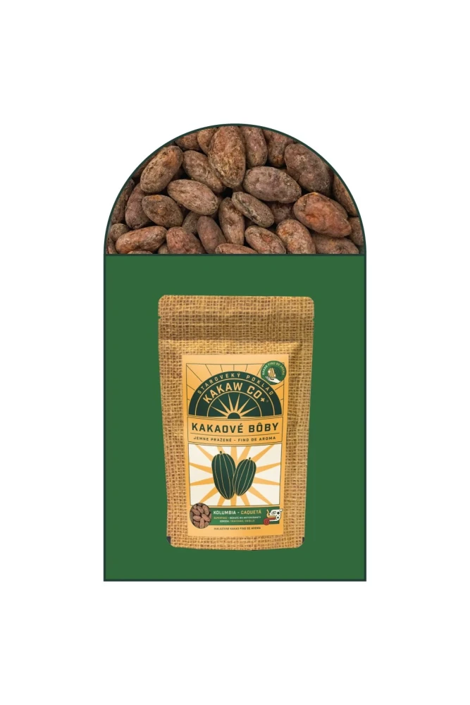 Bôby v prémiovej kvalite 'fino de aroma' boli ručne zozbierané, fermentované, vysušené, jemne upražené a obalené v chrumkavej poleve z panely a tenkej vrstve 100% odrodovej čokolády. Majú výnimočný čokoládový chuťový profil s tónmi sušeného lesného ovocia, sladkého bobuľového ovocia, čokolády a panely. Bôby pochádzajú výlučne z kolumbijského regiónu Tolimá, preto nesú prívlastok single origin (pochádzajúci iba z jediného regiónu). Boli vypestované a ručne zozbierané výlučne na jednej konkrétnej plantáži, preto sa môžu pýšiť aj prívlastkom single estate (pochádzajúci iba z jednej plantáže). Navyše ide o bôby z iba jedinej odrody kakaa - criollo, a preto hovoríme aj o prvotriednych odrodových, tzv. kakaa. varietal bôboch. Obsah tuku v kakaovej sušine je až 52%. Práve vo vysokom podiele tuku sú obsiahnuté všetky zdraviu prospešné minerály – najmä horčík, vápnik, draslík a železo a vitamíny – predovšetkým A, B1, B2, B3, C a E. Chrumkavé kakaové bôby Kakaw Co+ obsahujú veľké množstvo protizápalových antioxidantov, sú bohaté , priaznivo pôsobí na náš nervový aj krvný systém, tráviacu sústavu, schopnosť koncentrácie a na náladu.