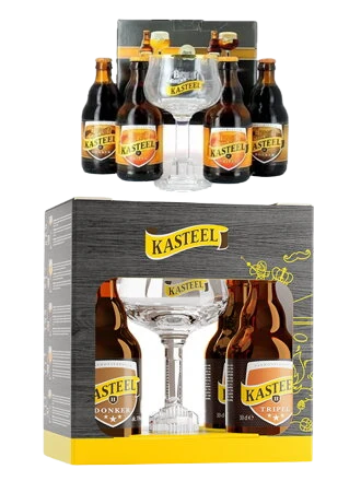 Kasteel darčekové balenie obsahuje: 1x pohár, 2x Kasteel Donker, 2x Kasteel Triple