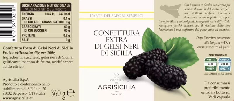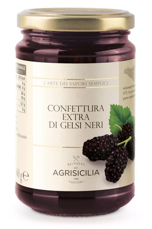 Sicílsky džem z čiernych moruší od talianskej spoločnosti Agrisicilia, ktorý je skutočnou pochúťkou pre chuťové poháriky. Každý, kto aspoň raz navštívil Sicíliu, si navždy uchová spomienku na chuť sicílskych čiernych moruší. Ide o vzácne a ťažko zbierateľné plody, pretože sú jemné, no výsledkom ich spracovania je džem s jedinečnou a exkluzívnou chuťou.