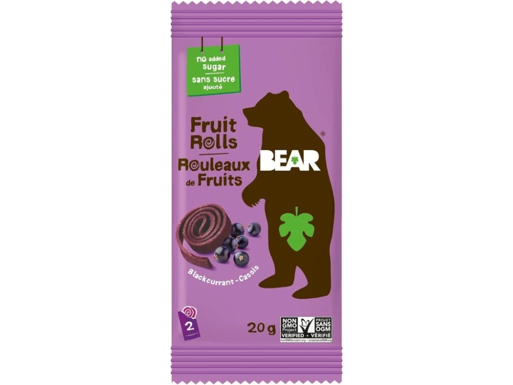 BEAR ovocné rolky sú lahodné jemne pečené rolky vyrobené len z ovoci. Balenie s hmotnosťou 20 g pokrýva 1 z 5 odporúčaných denných porcií ovocia a zeleniny a obsahuje rovnaké množstvo ovocného cukru ako 1 malé jablko.